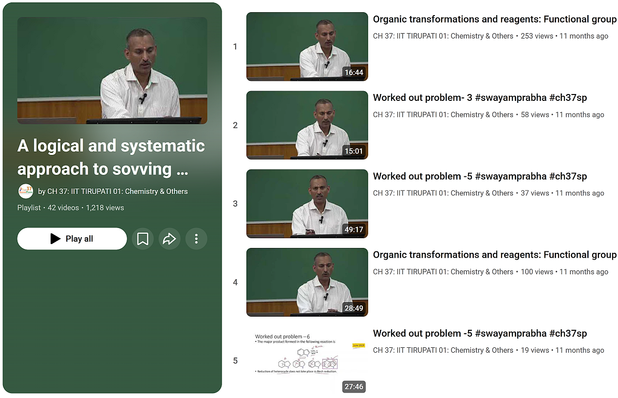 Following are the other courses developed by Dr. Balaji which are available online for organic chemistry students with the support from SWAYAM Prabha TV Channel (CH15), IIT-M.